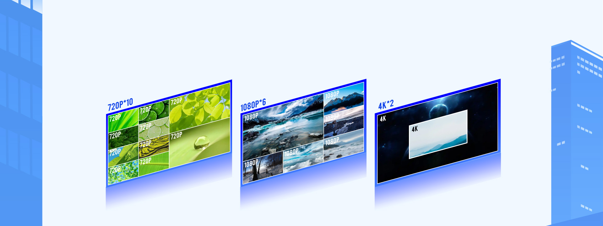 1x 4K/ 2x 1080P/ 4x 720P/ 4x 480P/ 8x 360P/ |