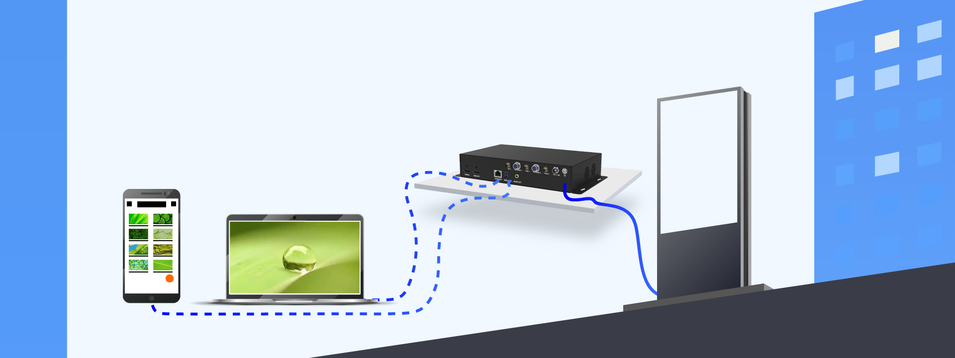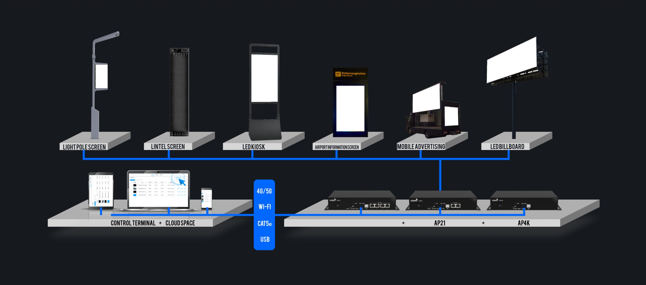 AP Series is cloud-based media player, which integrates media player and LED sending controller and is designed for both LCD and LED displays. It supports flexible playback from local USB drives, live HDMI input, and cloud storage.